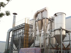 热空气切线进入干燥器底部,在搅拌器带动下形成强有力的旋转风场。膏状物料由螺旋加料器进入干燥器内,在高速旋转搅拌桨的强烈作用下,物料受撞击、磨擦及剪切力的作用下得到分散,块状物料迅速粉碎,与热空气充分接触、受热、干燥。脱水后的干物料随热气流上升,分级环将大颗粒截留,小颗粒从环中心排出干燥器外,由旋风分离器和除尘器回收,未干透或大块物料受离心力作用甩向器壁,重新落到底部被粉碎干燥。